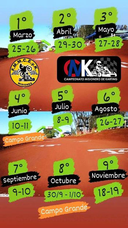 La Federación de Motociclismo, Motocross, Cuatriciclos, Enduro y Karting de la provincia de Misiones (FMMCEyK) dio a conocer hace algunas horas, el calendario 2023 para el Karting Tierrero Misionero.