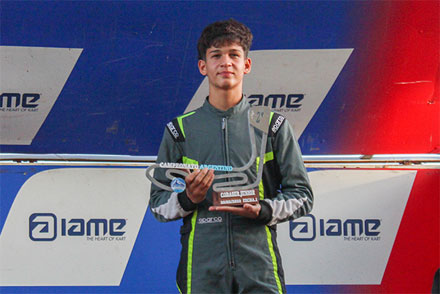 Antes de subir al podio nacional, refirió: “El karting perdió algo de rendimiento en la tercera manga, hasta que tuve un toque y abandoné. En la largada de la final quedamos 6°. Tiramos con Falivene que iba más rápido que los demás. Pudimos alcanzar a los primeros dos, se empezaron a pelear y terminé ganando yo. Cuando pasé al P2, el puntero ya estaba muy lejos. Fue una muy buena carrera”.