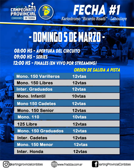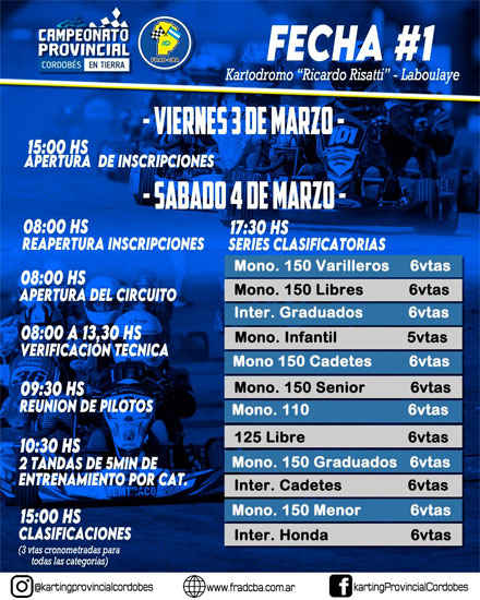 Comienza el torneo cordobés más importante sobre tierra. Tendrá 5 fechas y el Kartódromo “Ricardo Risatti” será el escenario de la fecha inicial.
