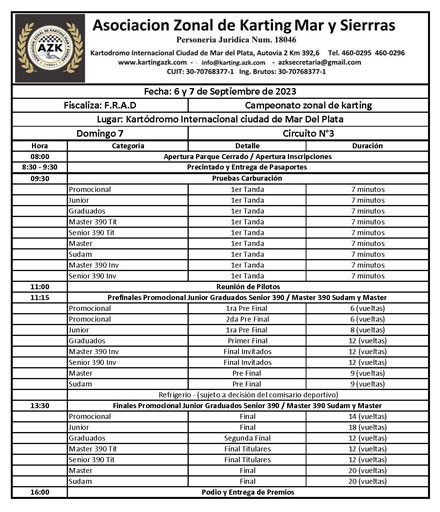 La segunda fecha del calendario 2024 de la Asociación Zonal de Kart (AZK) se cumplirá este fin de semana en el Kartódromo Internacional “Ciudad de Mar del Plata”, ubicado en el kilómetro 392,500 de la Autovía 2.