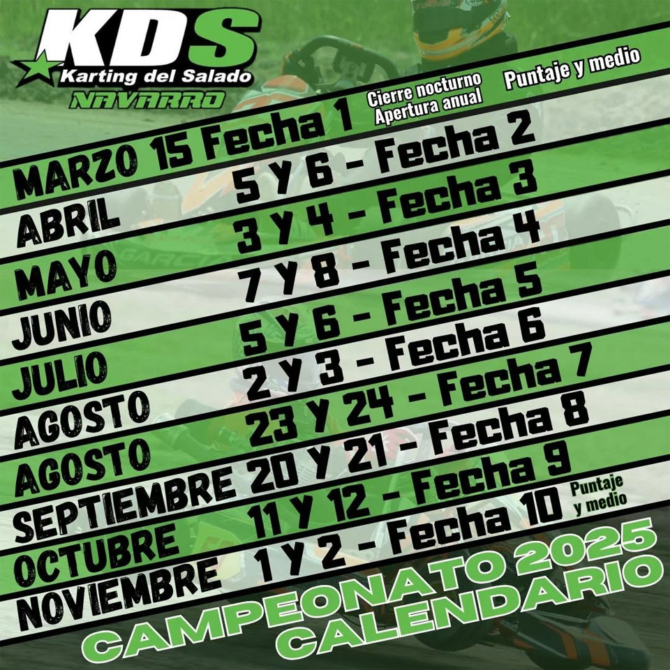 El Karting del Salado Bonaerense (KDS) confirmó su calendario anual 2025, con 10 fechas que se desarrollarán íntegramente en el circuito “Sebastián Ferzzola” de Navarro.