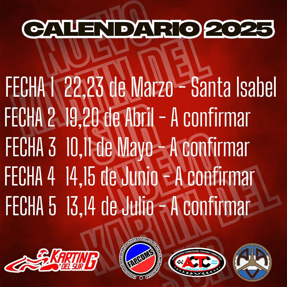 El campeonato 2025 del Nuevo Karting del Sur Santafesino empieza a tomar forma con la confirmación de sus primeras cinco fechas.