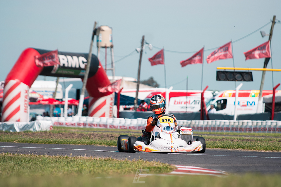 El piloto de CABA, Santiago Fabani, fue uno de los protagonistas destacados de la DD2 durante la RMC Final Argentina, el evento de mayor jerarquía del calendario Rotax a nivel nacional. El volante porteño encaró la exigente cita con gran solidez, donde esgrimió su experiencia, dentro de un parque que reunió a los mejores exponentes del país y la región. Su desempeño fue de menos a más, sobreponiéndose a dificultades técnicas para construir una presentación sobresaliente que lo llevó a lo más alto de su divisional. Desde los entrenamientos, Fabani mostró su oficio para adaptarse al trazado entrerriano y trabajar sobre el rendimiento general de su conjunto. Cabe señalar que la DD2 se conformó con pilotos de las clases Master y Senior, quienes compartieron pista en todas las salidas oficiales. En ese contexto, Fabani representó a la DD2 Senior, con una actuación destacada frente a un lote altamente competitivo. El viernes consiguió el 8º registro clasificatorio en la general, aunque no ocultó cierta preocupación por el rendimiento de su motor. “En esta categoría hay que correr con un buen motor para poder estar competitivos. Lamentablemente no tenemos el mejor impulsor. Haremos lo que se pueda, pero no estamos con los mejores medios para el resultado que vinimos a buscar. Vamos a seguir trabajando”, explicó con sinceridad el capitalino.