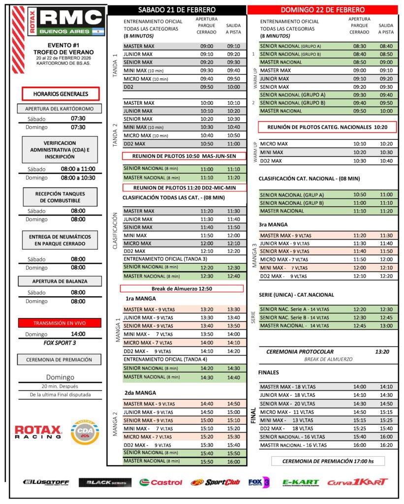 CABA. Este fin de semana, en el Kartódromo “Ciudad de Buenos Aires”, comenzará el Trofeo de Verano 2026 de RMC Buenos Aires sobre el circuito Nº 2 del escenario porteño. La primera fecha marcará el punto de partida de un nuevo camino deportivo rumbo a la RMC Final Argentina.