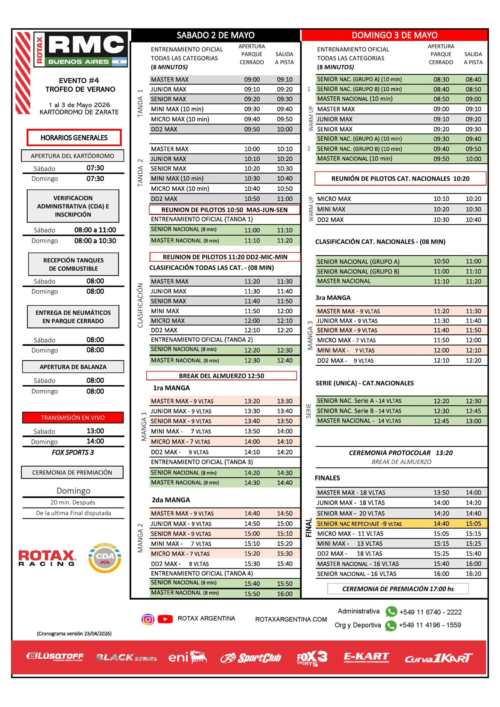 El cuarto capítulo del Trofeo de Verano de RMC Buenos Aires ya tiene definidos sus horarios oficiales. Tres jornadas intensas estructurarán la actividad en pista.