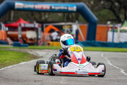 Desde el escalón más bajo del podio, Vito Lipara festejó en el kartódromo de la ciudad de Buenos Aires su gran actuación durante la Fecha #6 de la Champion Cup de IAME Series Argentina. El piloto de CABA empató el mejor tiempo durante la clasificación, mantuvo el protagonismo en las etapas preliminares y cerró con un P3 la competencia Final de la divisional Cadete. El sábado se completaron los entrenamientos, se disputó la clasificación y la primera manga. Allí, Vito inició un compromiso sumamente positivo, al marcar un tiempo de 54s 910/1000, idéntico al del poleman, lo que le otorgó el privilegio de largar desde la primera fila en las mangas. Este no fue un dato mejor, sino un logro destacado en una divisional tan competitiva y numerosa. Sin embargo, la fortuna no lo acompañó en la Manga 1 y quedó relegado al P21. Pese a la situación, Vito rescató la importancia del gran arranque del fin de semana: “Empezamos muy bien el fin de semana, con buenos tiempos y con la pista mojada (viernes). El sábado también tuvimos excelentes registros, y empatamos el mejor tiempo en la clasificación, pero quedamos 2º porque el otro piloto lo hizo primero que nosotros. En la primera manga, largamos desde la primera fila. La largada fue bastante complicada. Nos perjudicó largar desde el lado de afuera, además del estado de la pista. Terminamos muy retrasados en la primera”.