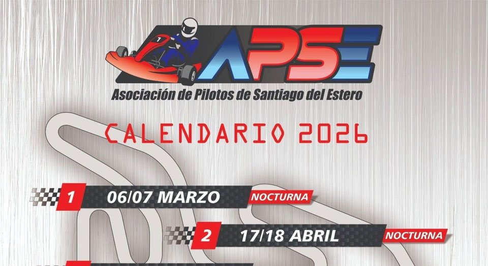 Santiago del Estero, Capital. La Asociación de Pilotos de Santiago del Estero (APSE) informa oficialmente la conformación del calendario de competencias para la temporada 2026 del karting santiagueño, que contará con ocho fechas puntuables a desarrollarse íntegramente en el Kartódromo «Francisco de Aguirre».