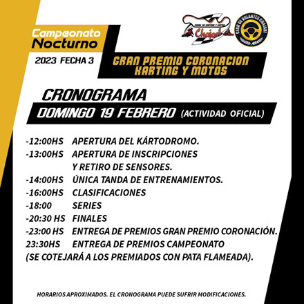 Este próximo fin de semana se correrá la 3ª y última fecha del Torneo Nocturno de Verano del Karting Chajariense.