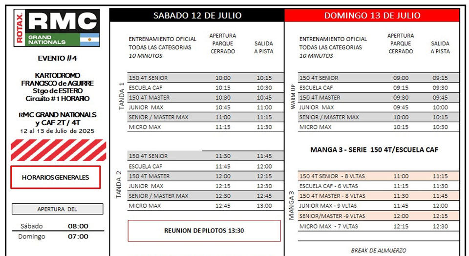 Se mantendrá el esquema de competencias de llevar adelante el día sábado lo correspondiente a los entrenamientos oficiales cronometrados a partir de las 14:30hs.