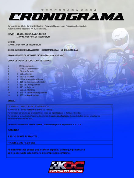 El programa señala que hoy se abrirán las puertas del predio y comenzarán a recepcionarse las inscripciones de los 411 pilotos que adelantaron su participación a través de la web. Para mañana, en tanto, se prevé la continuidad de las inscripciones y el inicio de pruebas libres cronometradas, no obligatorias.