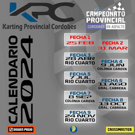Cabe destacar, la confirmación del Kartódromo de Colonia Caroya con dos presentaciones: la cuarta fecha del calendario los días 8 y 9 de junio y la séptima programada para el 7 y 8 de septiembre.