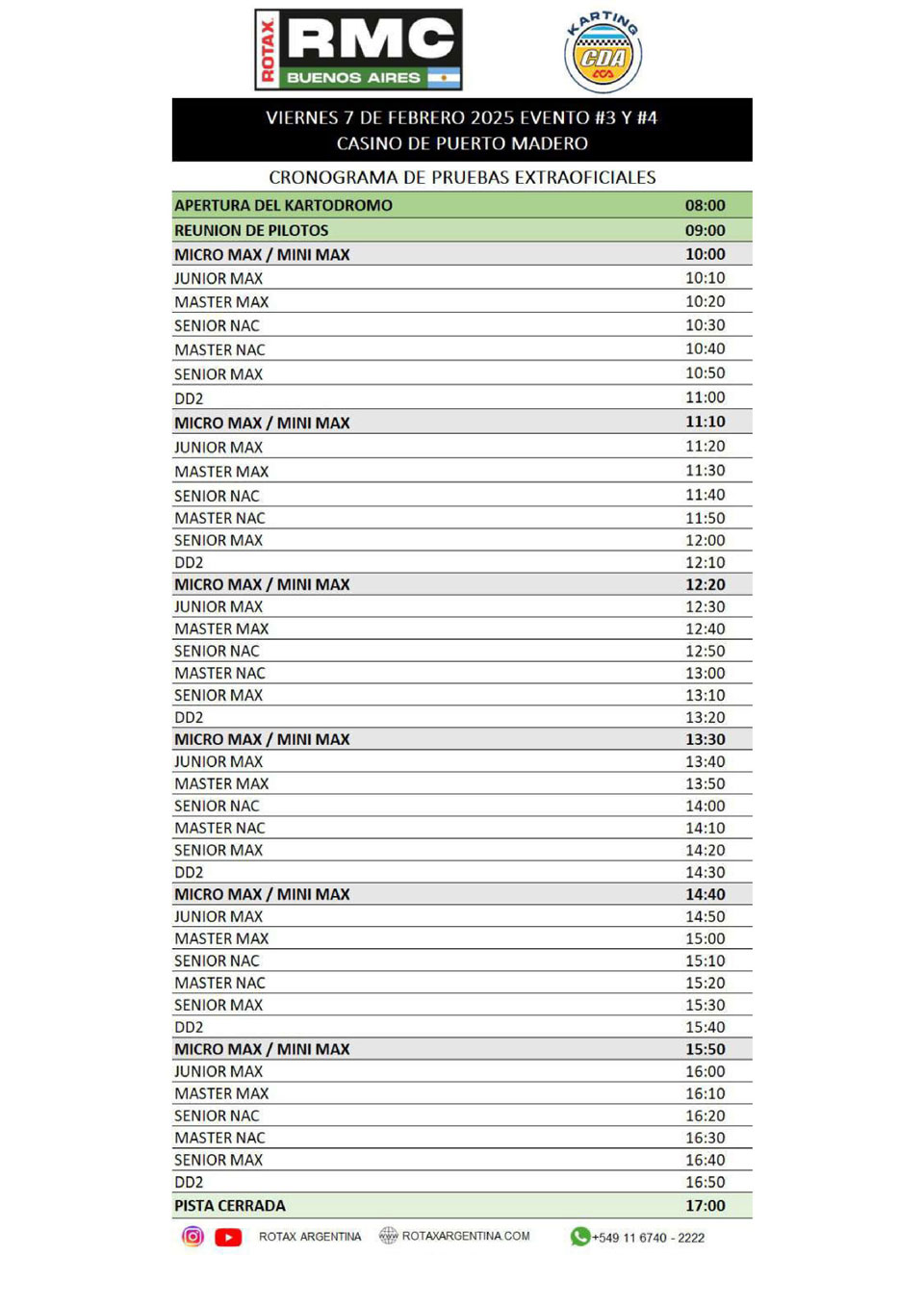 La inscripción puede realizarse a través de la plataforma oficial de Rotax (http://rotax-ems.com/ARG) o mediante la app “Rotax Global”, donde también se encuentra disponible el cronograma completo del fin de semana. Los pilotos deberán enviar el comprobante de pago para completar el registro.