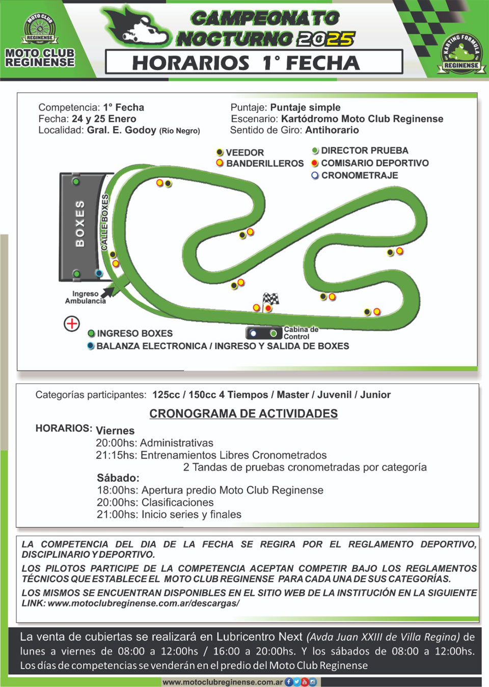 Entre el viernes 24 y sábado 25 se correrá en el Kartódromo del Moto Club Regiense la 1° Fecha del Campeonato Nocturno 2025.