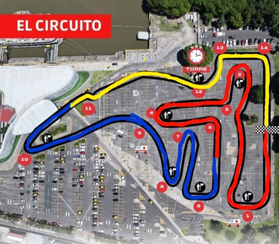 Diseñado como un circuito semipermanente, el trazado urbano tiene un total de 14 curvas que combinan sectores muy cerrados y lentos con otros rápidos, lo que promete una competencia dinámica y técnica.