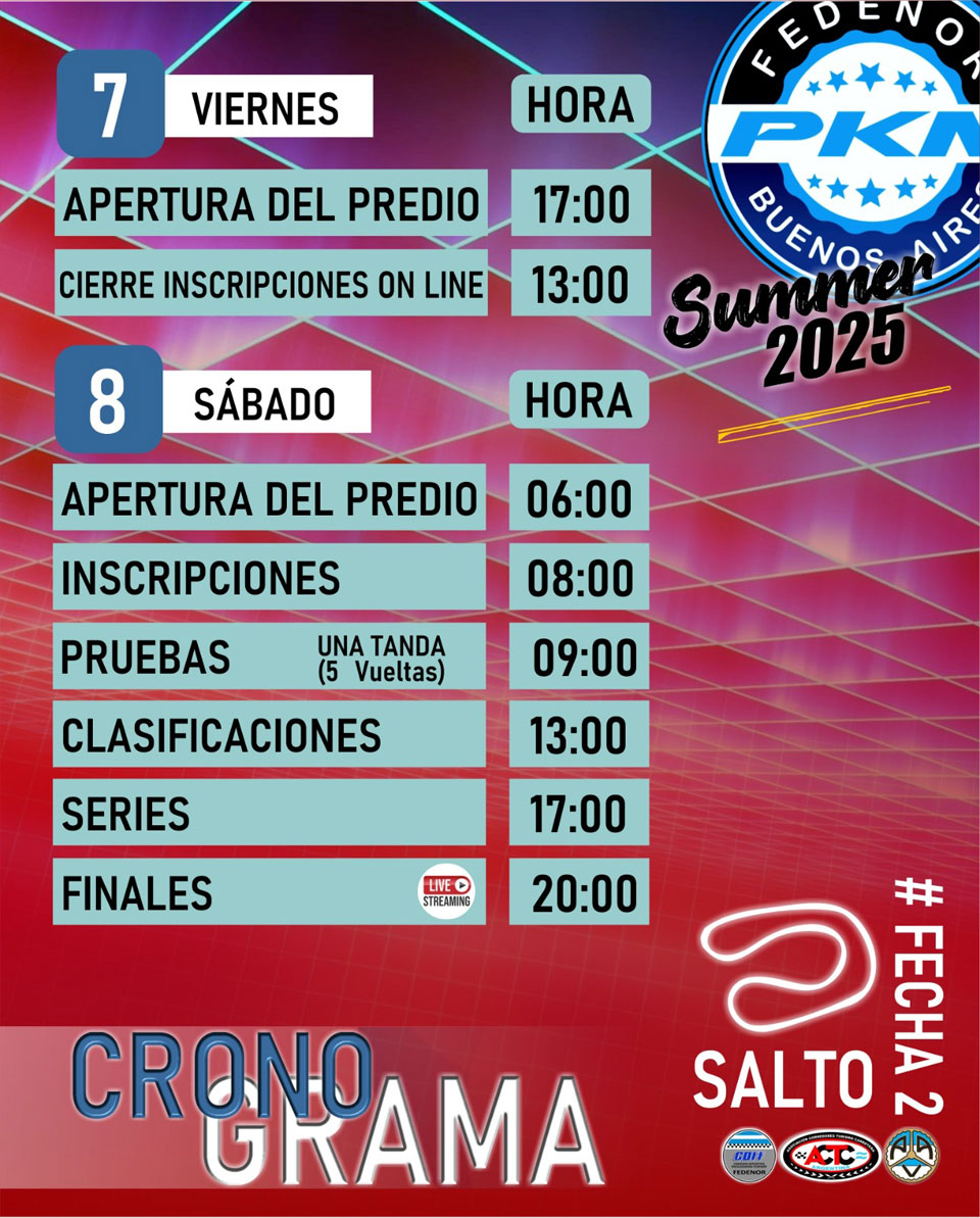El Campeonato Nocturno del PKN regresa este sábado 8 de febrero al Kartódromo Oscar “Bocha” Viola de Salto, Buenos Aires, para la segunda fecha del certamen. Con más de 250 pilotos confirmados, la categoría continúa marcando su crecimiento y consolidándose como una de las más convocantes del verano.