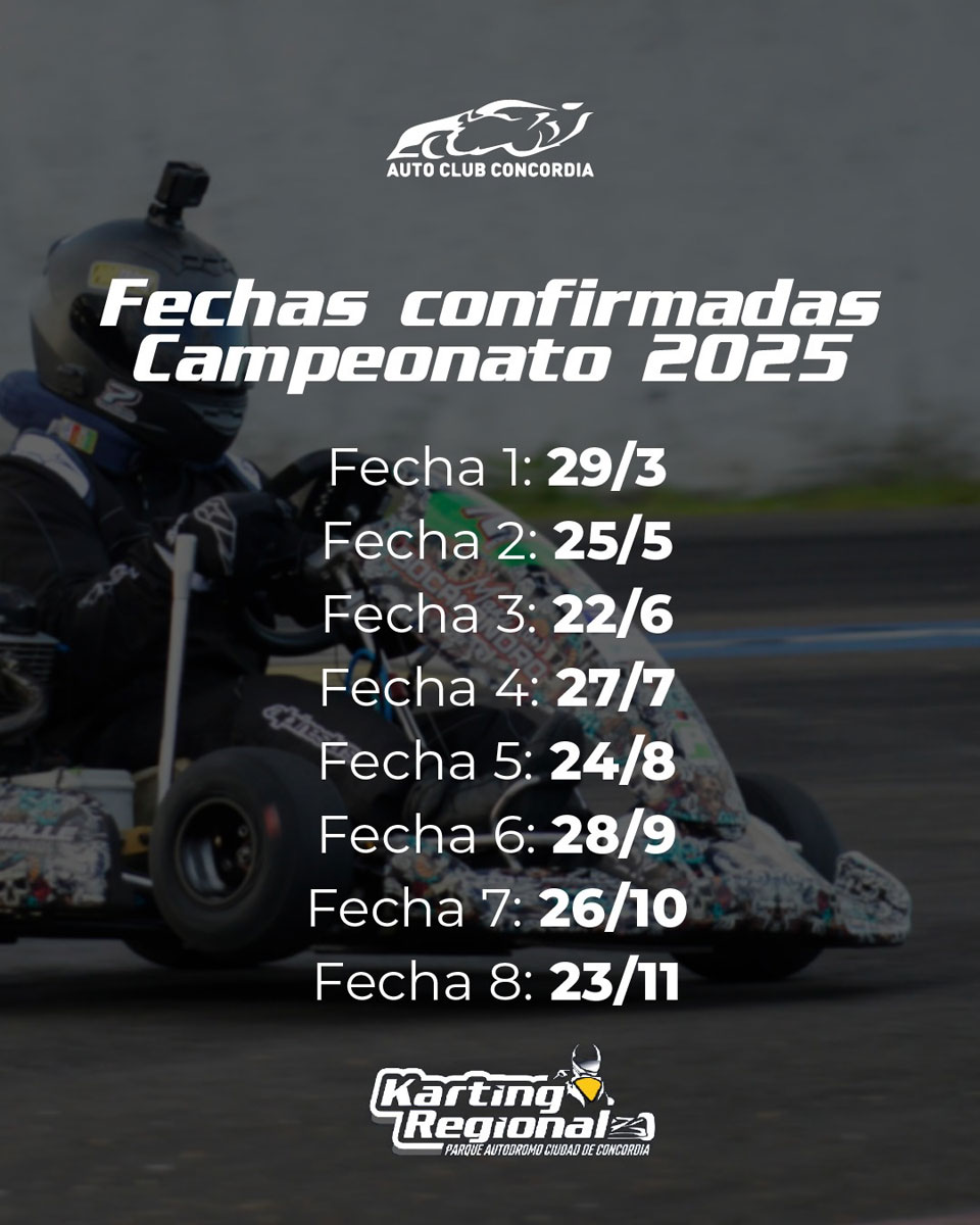 El certamen 2025 del karting en Concordia tendrá una modificación en su arranque. Debido a ajustes en la planificación, la primera fecha del campeonato se integrará a la última jornada del Campeonato de Verano, lo que reordena el calendario.