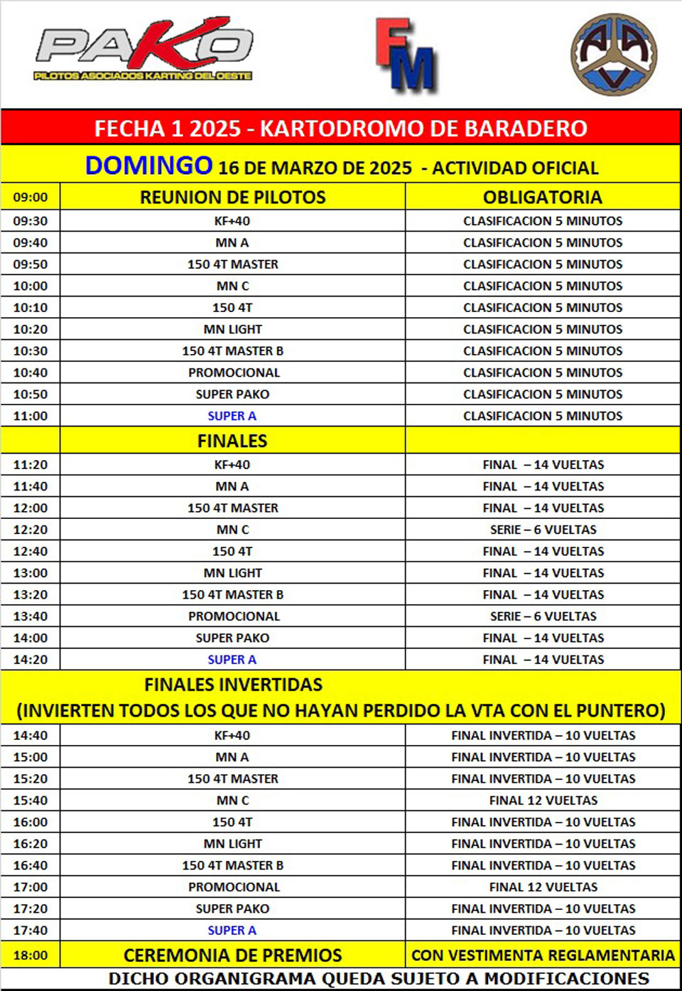 El evento marcará el inicio de un nuevo año de competencia en PAKO, que nuevamente reúne a pilotos de distintos puntos del país en un certamen con fuerte tradición dentro del karting argentino.