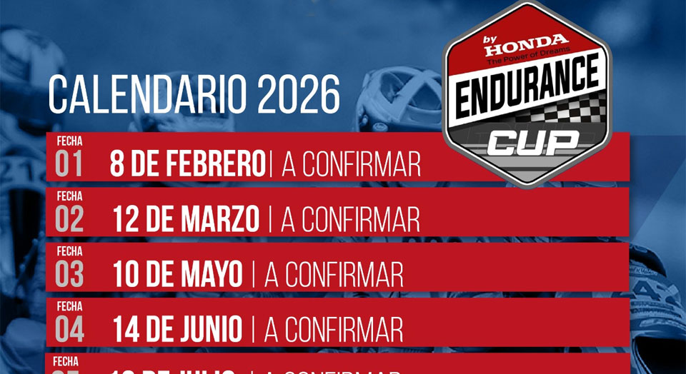 La Endurance Cup by Honda dio a conocer su calendario 2026, con un total de nueve presentaciones a lo largo del año, incluyendo una doble fecha en el cierre del certamen. Todas las sedes aparecen, por el momento, a confirmar, quedando sujetas a la asignación de circuitos.